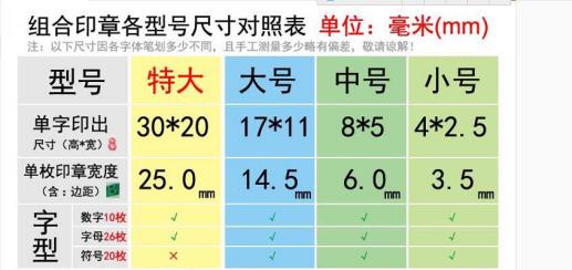 有一部分客戶需要的不僅僅是logo,而是需要順序印刷的編碼,例如“shuanglong-001”一直到“shuanglong-1000”這樣的話使用絲網印刷就明顯的不行了,我們不可能去做一千個絲網版。這種情況下我們一般使用活字碼人工進行印刷,費事費力,并且印刷出來不是特別的規范美觀。如果同行有更好的方法請不靈賜教,我的QQ:764234081。下圖就是我們常用的活字碼的尺寸表。